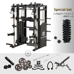 【台数限定】【GYM GARAGE】5in1マルチラック+1-10kgダンベルセット+専用ラック