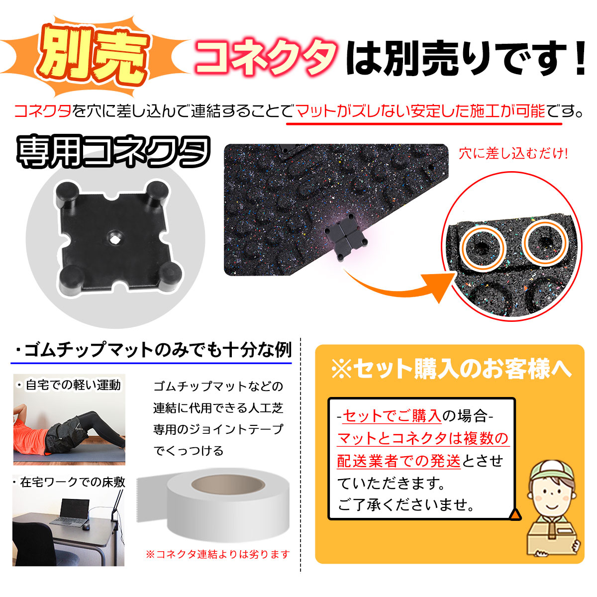使い方はゴムフロアマットにコネクタで接続するだけの簡単施工。