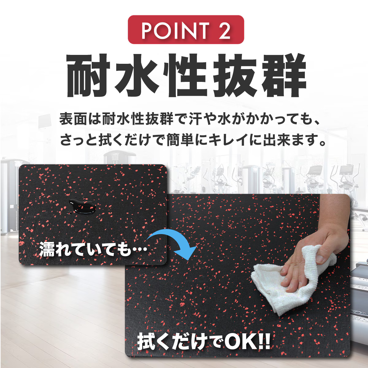 今までのジョイントマットでは満足できなかった方へおすすめの、トレーニングジムの悩みを解決するゴムフロアマットです。