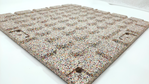 ・バージンゴム採用と工場選りすぐりのリサイクルゴムチップを採用。