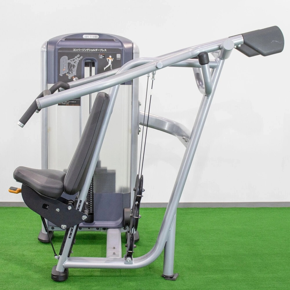 ・肩周りの「僧帽筋」「三角筋」をトレーニングするマシンとなります。