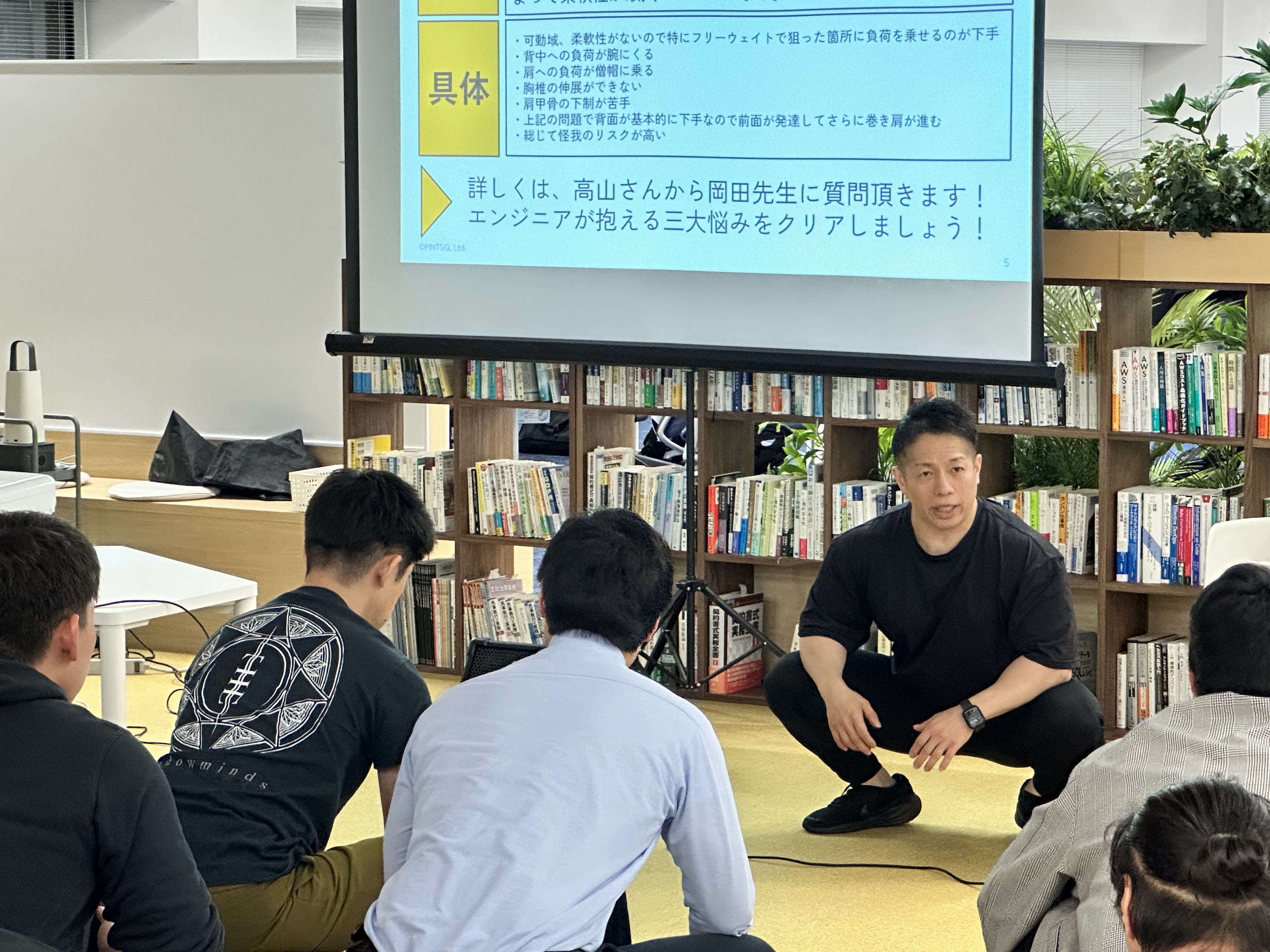 • 導入内容: ・オリジナルロゴ入りダンベル(1kg〜30kg) ・アジャスタブルベンチ ・バズーカ岡田による「エンジニア向け健康経営セミナー」の開催